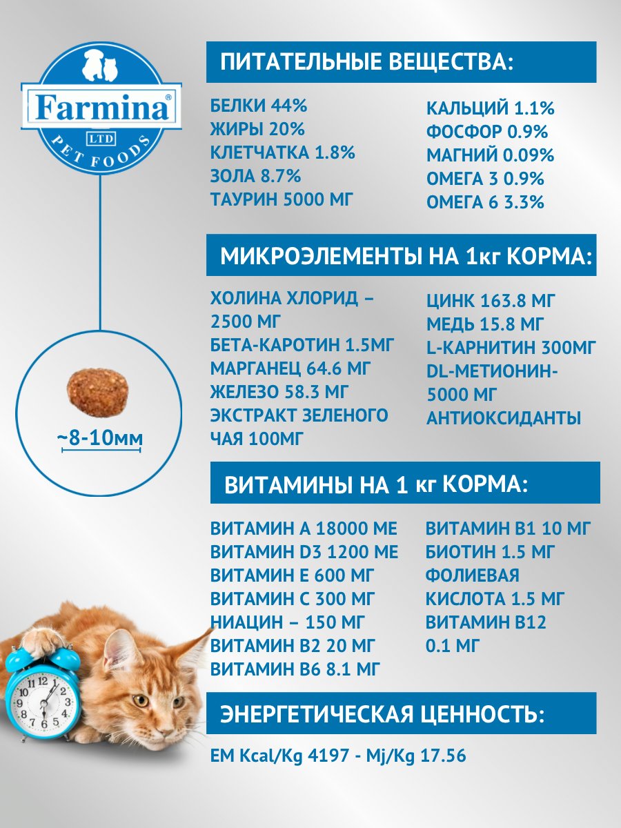 | Отзыв: | Ранее пробовали корма Pro Plan, Royal Canin, Monge, но они вызывали у кошки аллергию (зуд + отит), а потом и во все кошка отказывалась от еды. Из Farmina мы попробовали Зерновой Курица и гранат, и Беззерновой с Рыбой и Апельсином. Уплетала их на ура, но аллергия в виде зуда и опухших ушей появилась быстро. Уже третий месяц она кушает Farmina с Перепелкой, про аллергию забыли, трескает только у путь. Хотя, переходила она на него тяжко, видимо корм "курица с гранатом", ей больше понравился.