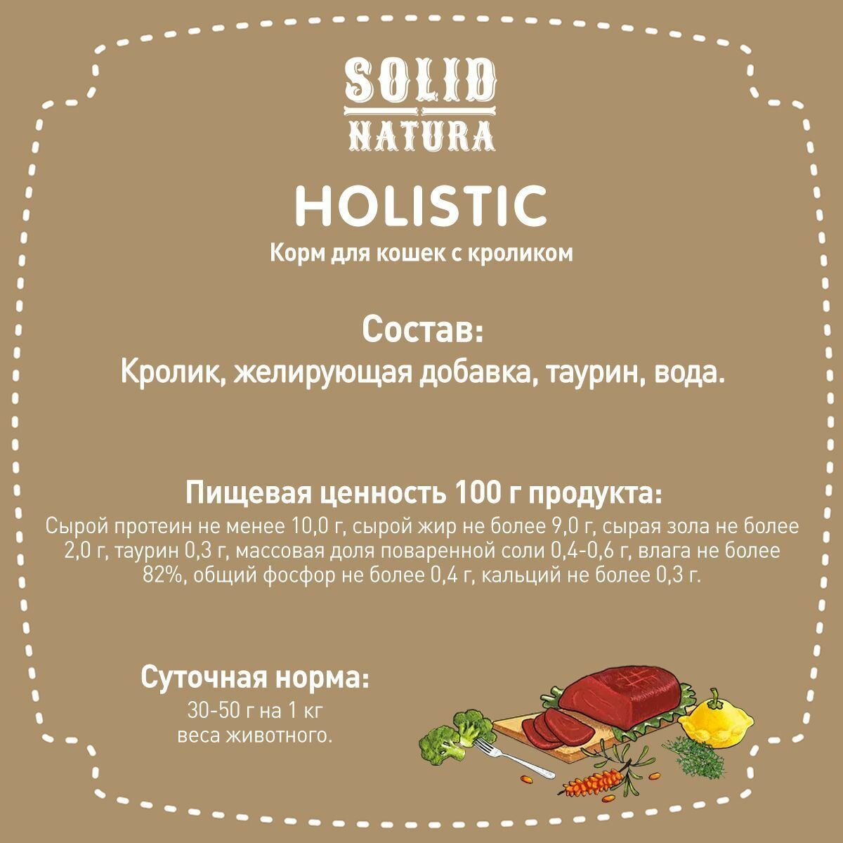 Влажный корм для кошек, Solid Natura Holistic, кролик, упаковка 6 шт х 340 г