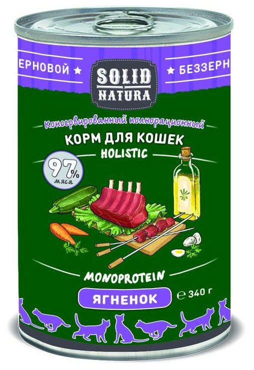 Корм влажный Solid Natura Holistic Ягнёнок для кошек, консервы, 340 гр