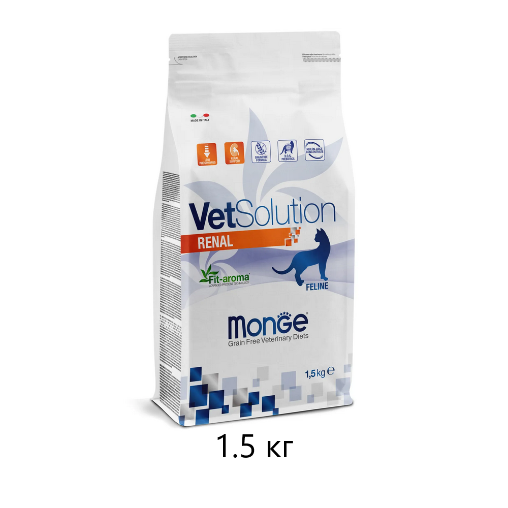 Сухой корм для кошек Monge VetSolution Cat Renal, при проблемах с почками, беззерновой, 1.5 кг