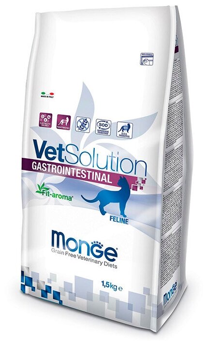 Ветеринарная диета Monge VetSolution Cat Gastrointestinal гастро интестинал для кошек при заболеваниях ЖКТ 1,5 кг