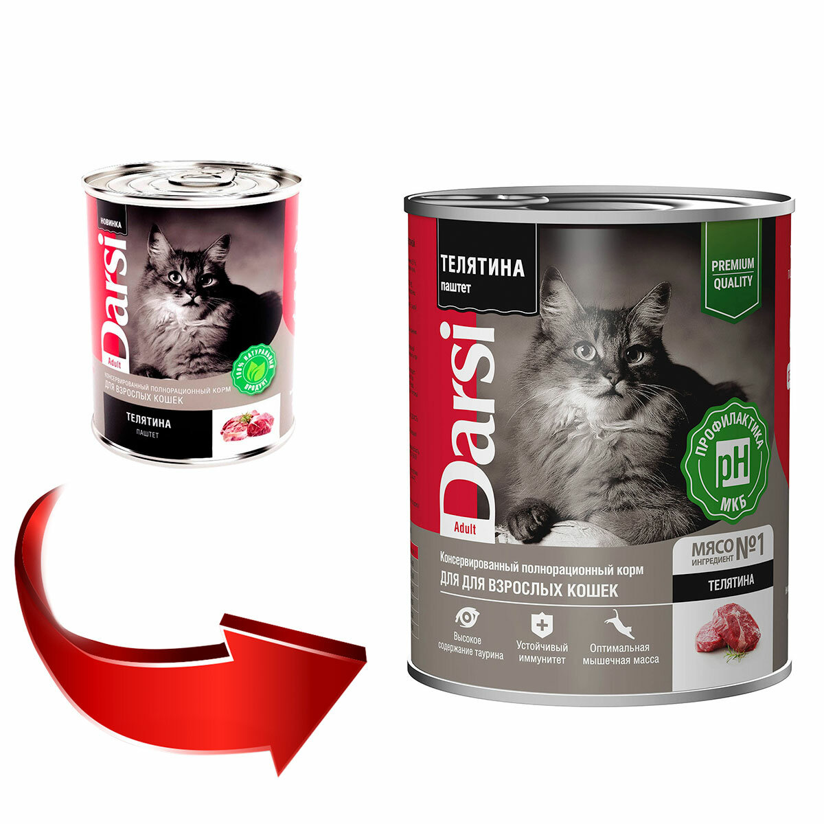 СохранитьКорм влажный Darsi (паштет) для взрослых кошек Телятина, 12шт.*340 г интересное: