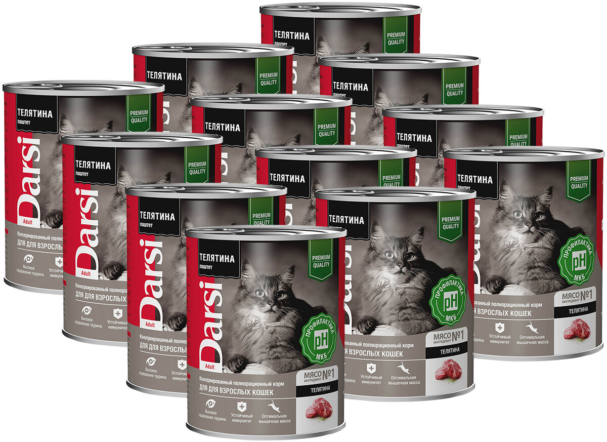 Корм Darsi (паштет) для взрослых кошек "Телятина", 340 г x 12 шт