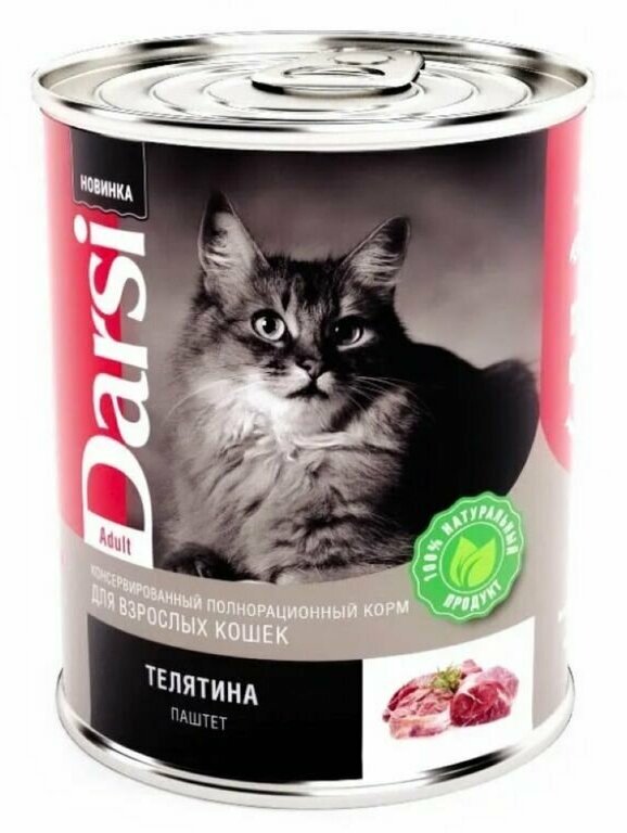 Купить Корм влажный Darsi (паштет) для взрослых кошек Телятина, 12шт.*340 г