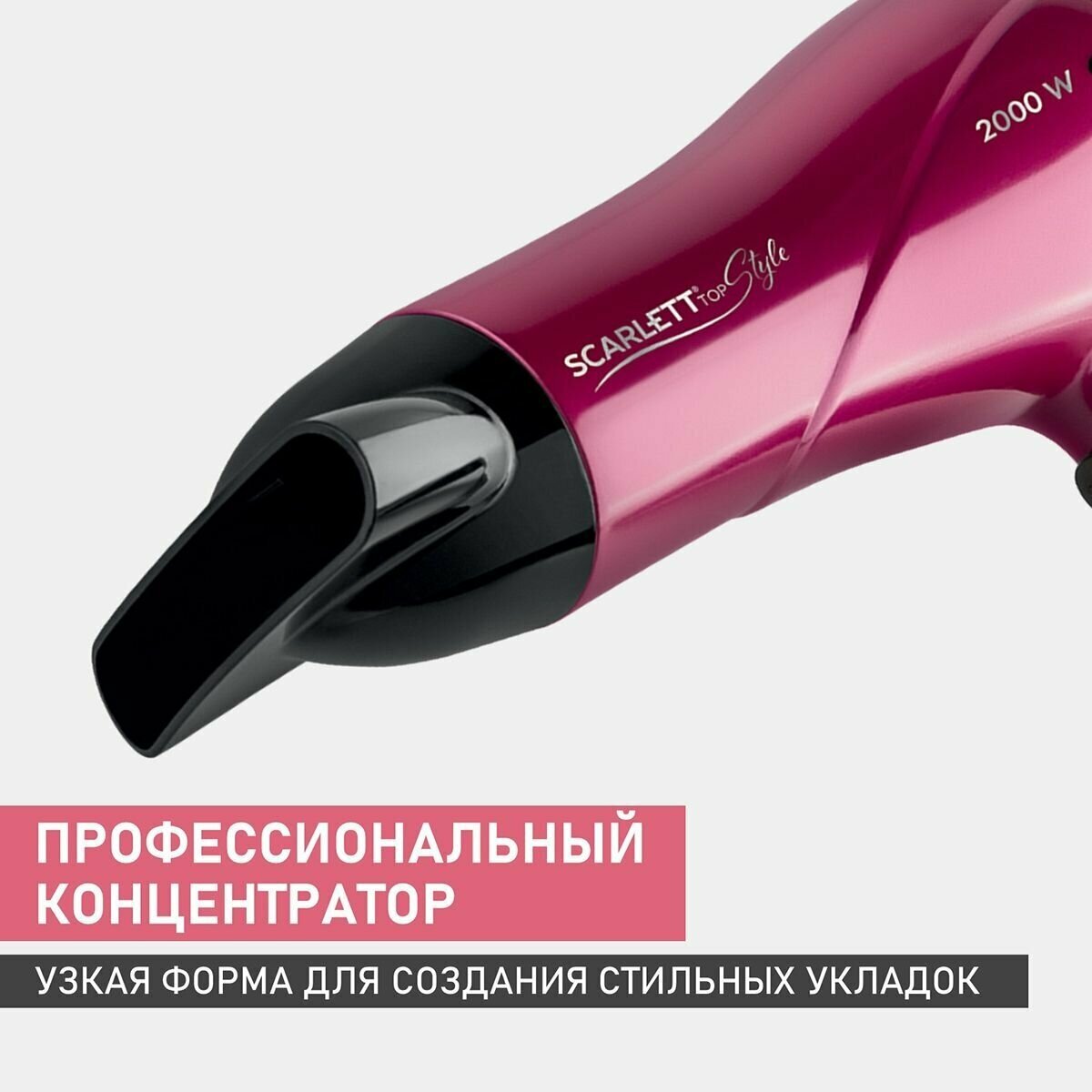 Фен Scarlett SC-HD70I67, 2000Вт, малиновый и черный