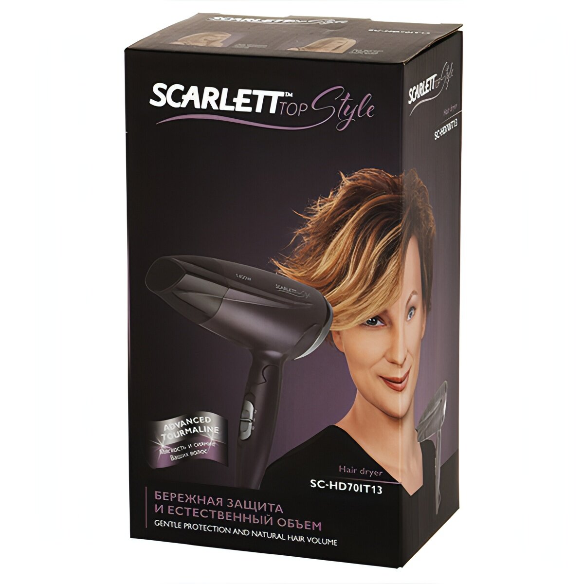 Купить Фен для волос Scarlett SC-HD70IT13, складной, дорожный, турмалиниовая ионизация, 1400 Вт, 2 скорости, 1 насадка