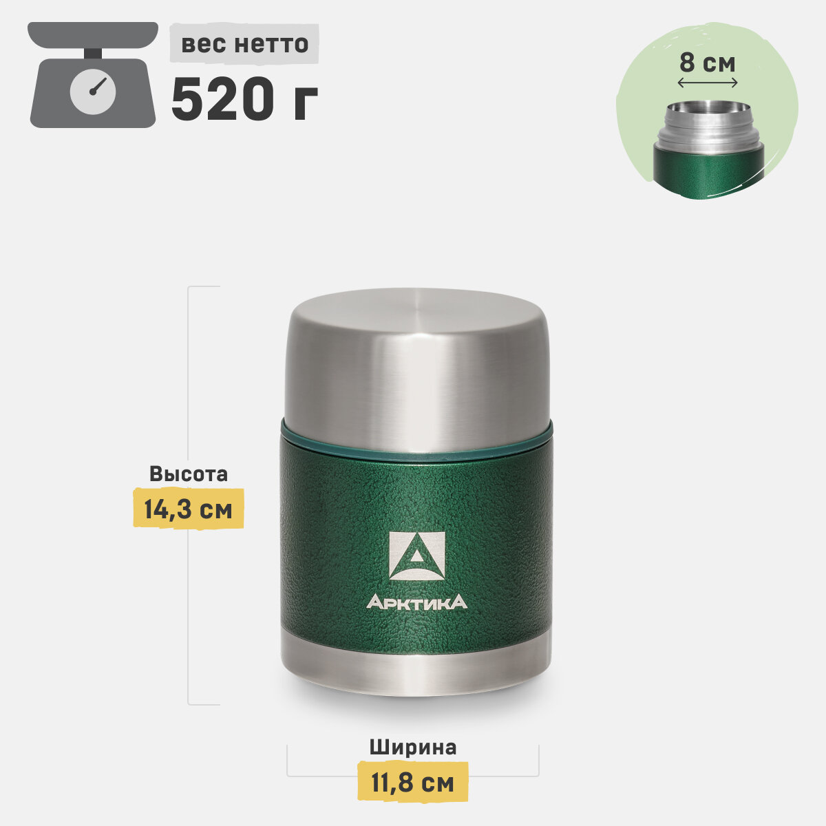 Термос для еды Арктика (0,6 литра) с супер-широким горлом, зеленый