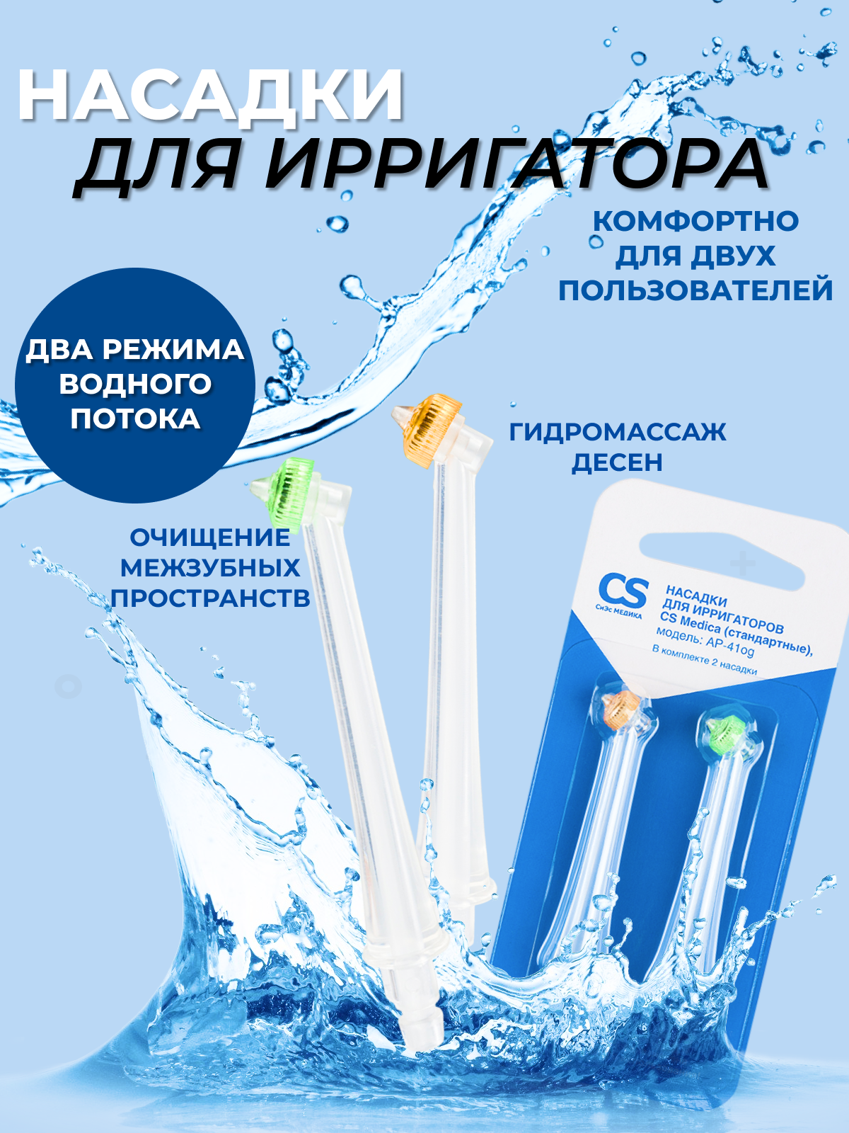 Насадки для ирригатора CS MEDICA AP-41mv, стандартные, 2 шт.