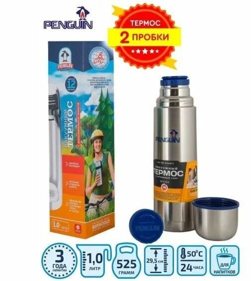 Классический термос Penguin BK-46, 1 л, стальной