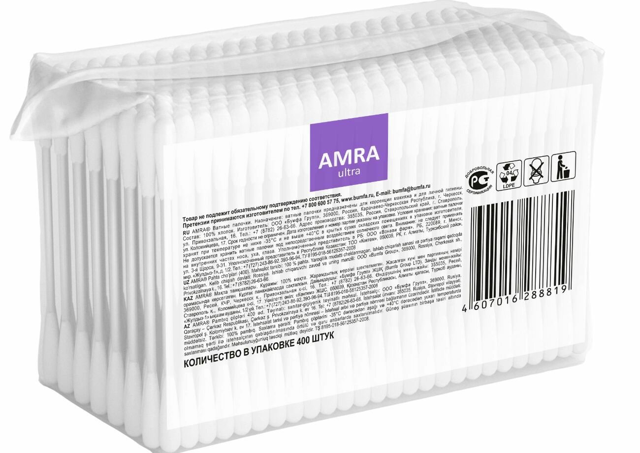 Купить Ватные палочки 400шт AMRA (пакет)/12