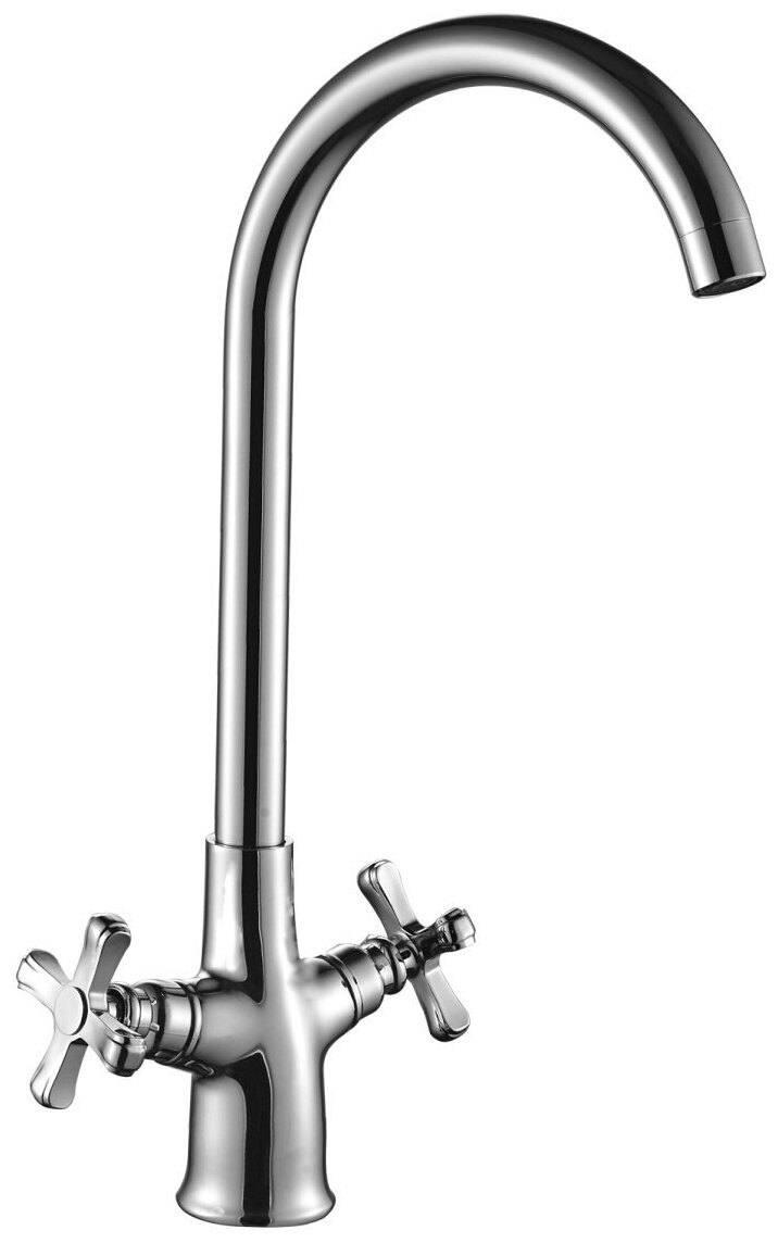 Смеситель DECOROOM DR47028 двуручный для кухни с высоким повортным изливом