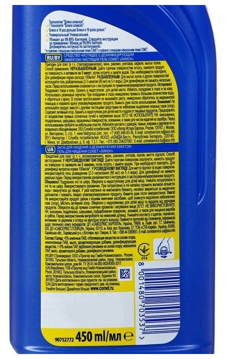 Comet гель универсальный Лимон, 0.45 л интересное: