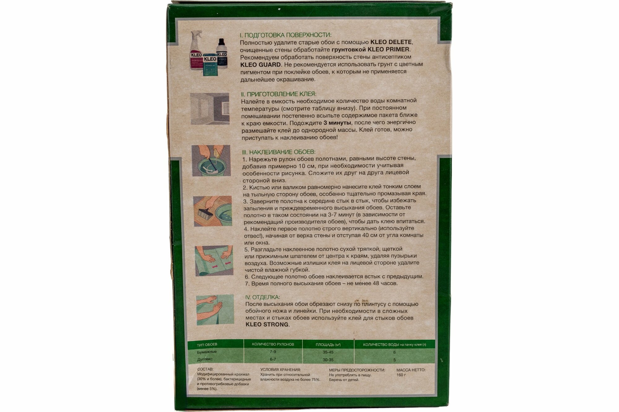 Клей для бумажных обоев Kleo LO 7-9 рул 160 гр