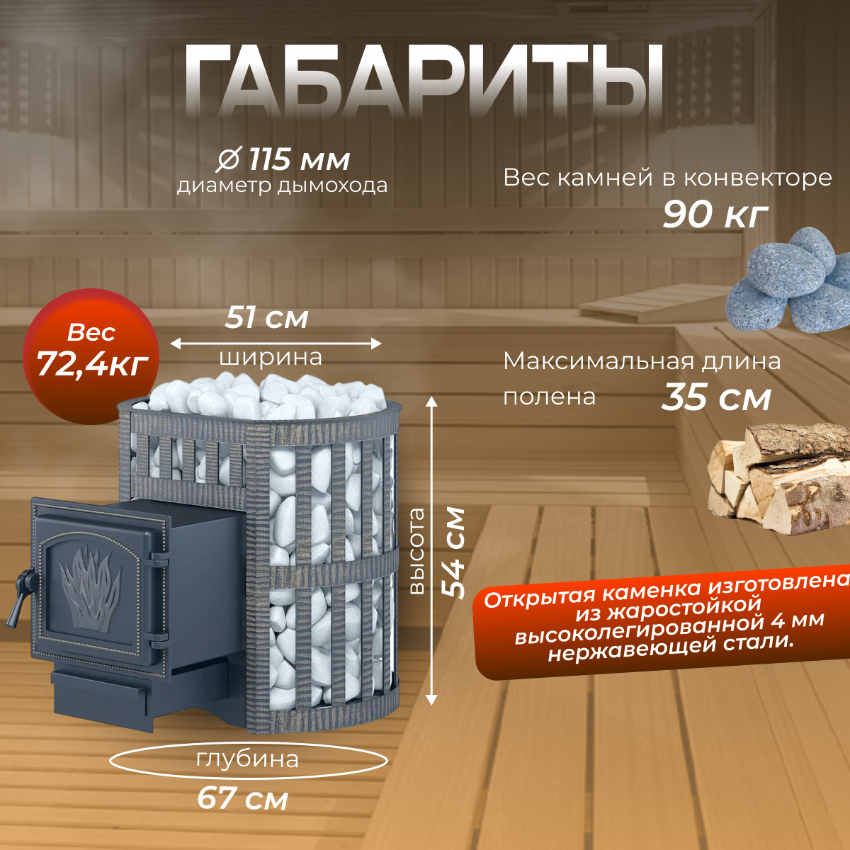 Печь для бани дровяная везувий Легенда Ковка 12 (261)