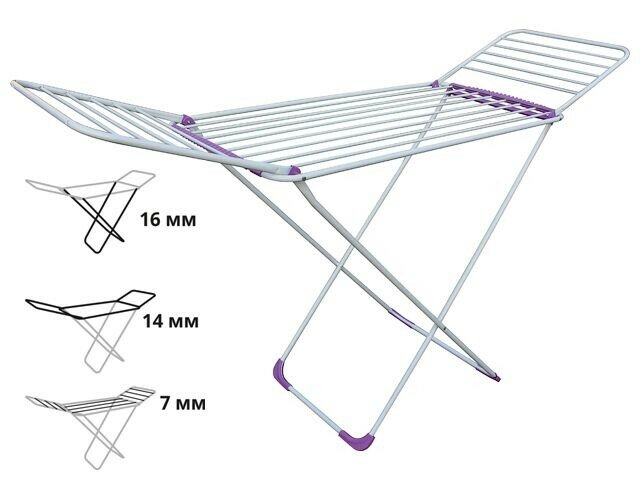 Сушилка для белья напольная, 18м, серия Gloria, бело-фиолетовая, PERFECTO LINEA (Сушильное полотно - 18 метров, размер 176х55х92.) (46-000215) интересное: