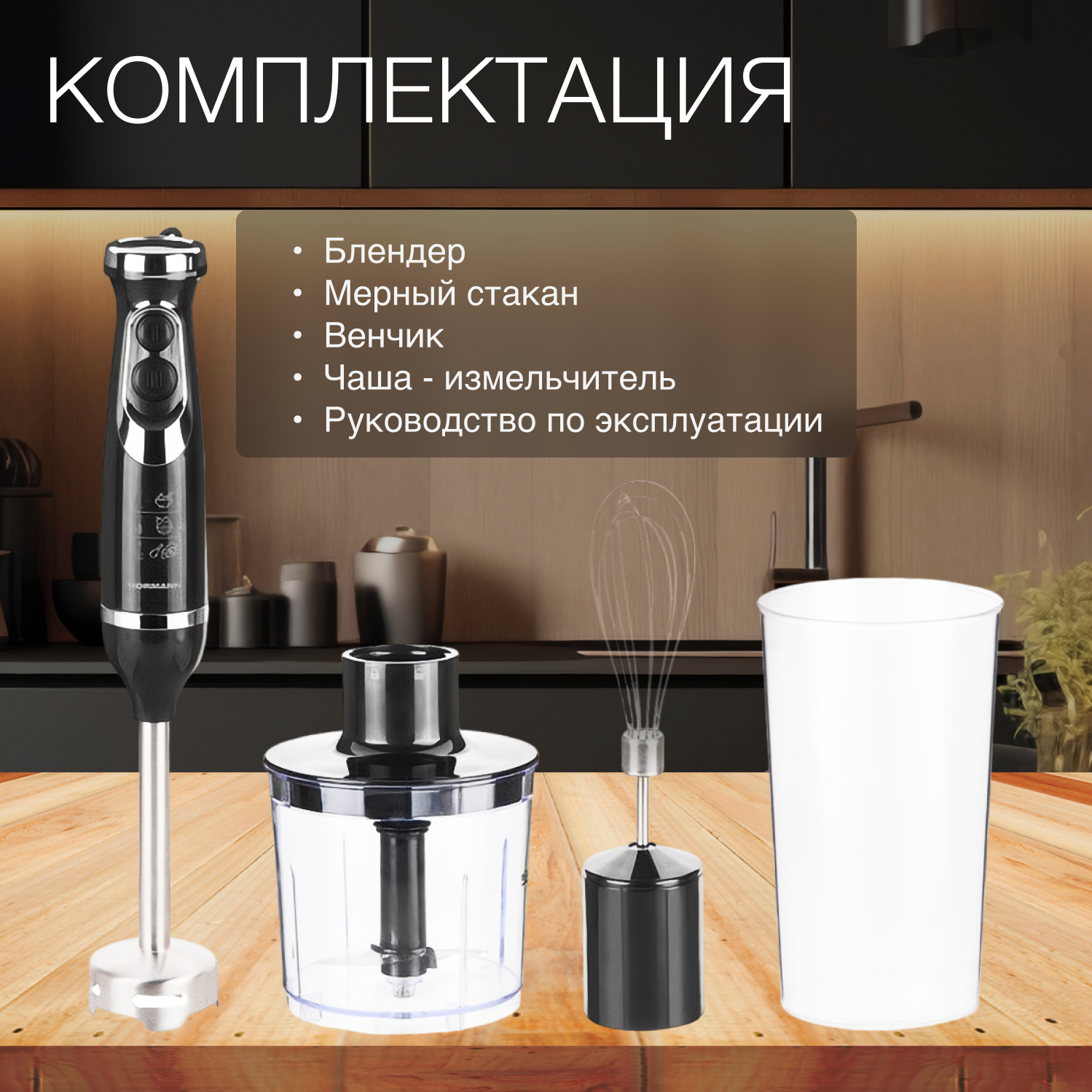 Normann Блендер погружной AHB-472 (750 Вт, регул.скор., венчик, измельчитель, стакан)