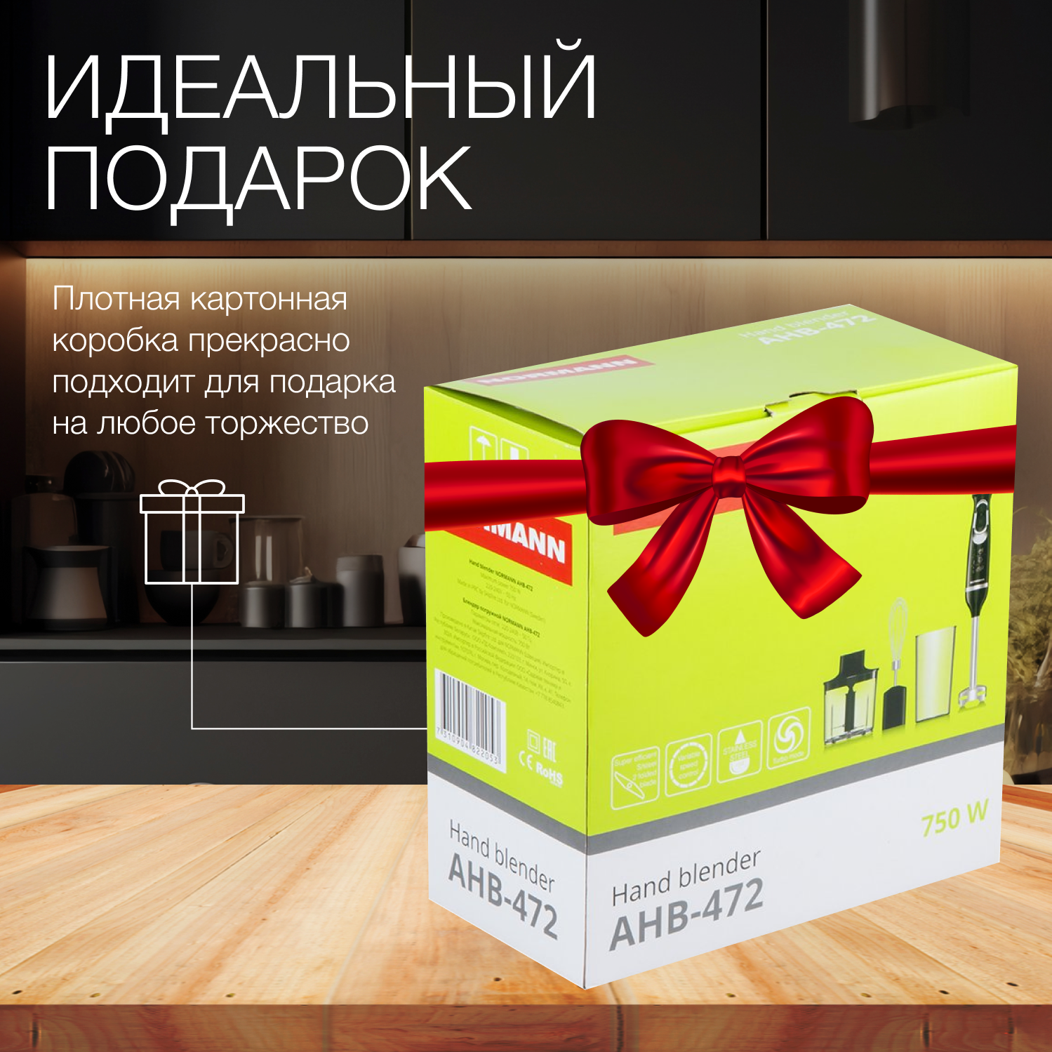 Блендер погружной AHB-472 NORMANN (750 Вт; регул.скор.; венчик; измельчитель; стакан) (AHB-472)