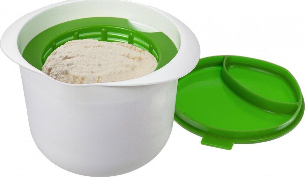 | Комплектация | чаша для молока, ёмкость-дуршлаг для сбора творога или сыра, силиконовая крышка, инструкция с рецептами |
