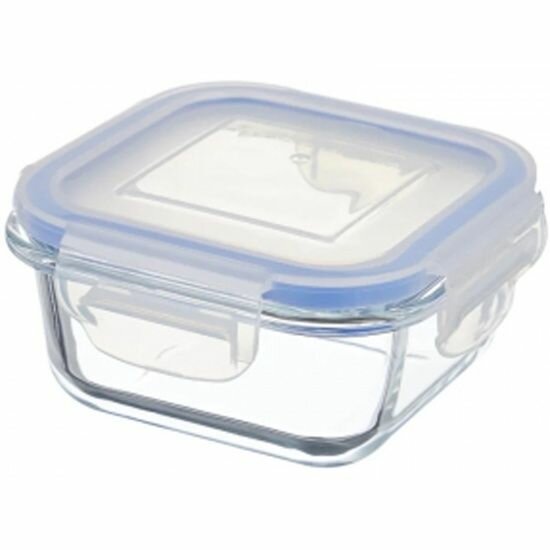 Контейнер стеклянный для пищевых продуктов с крышкой на защелках из пластика объем 0.5 л Размер: 13,7х13,7х6,4 см