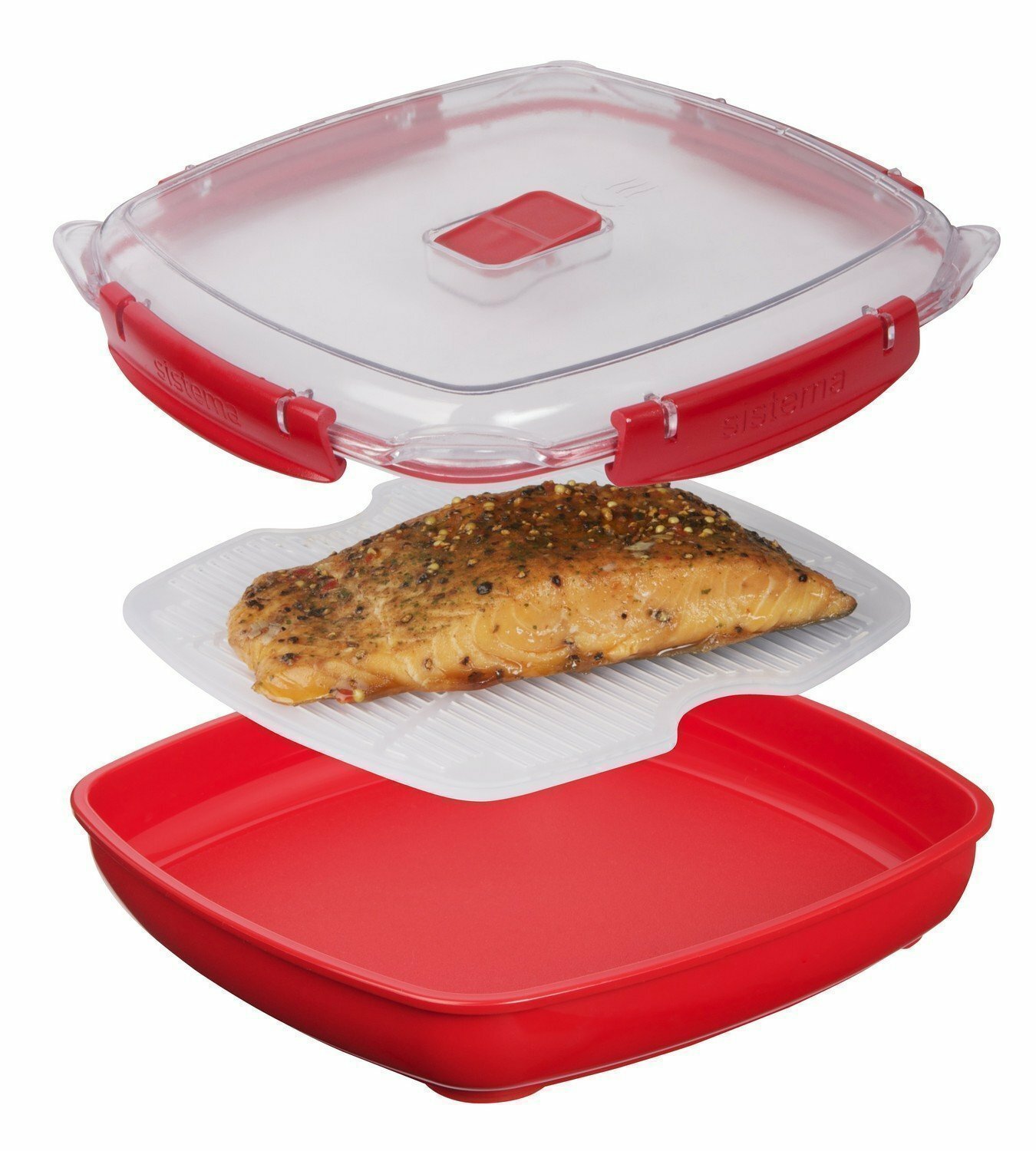 Контейнер пищевой низкий MICROWAVE 16,5х16,5х4,5 см, материал пластик, цвет красный, Sistema, SI1104
