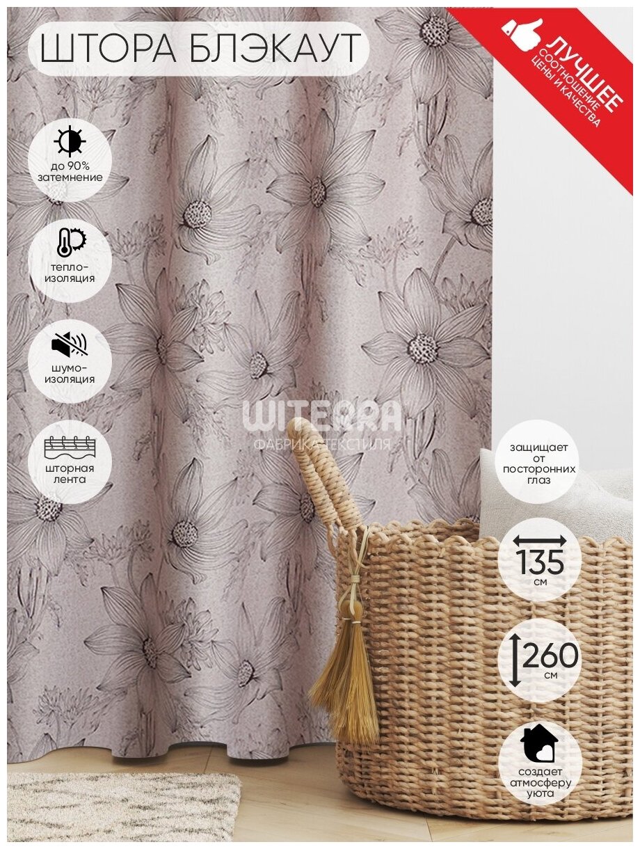 Штора Witerra портьерная "Ромашки" блэкаут кофе с молоком 135*260*1шт интересное: