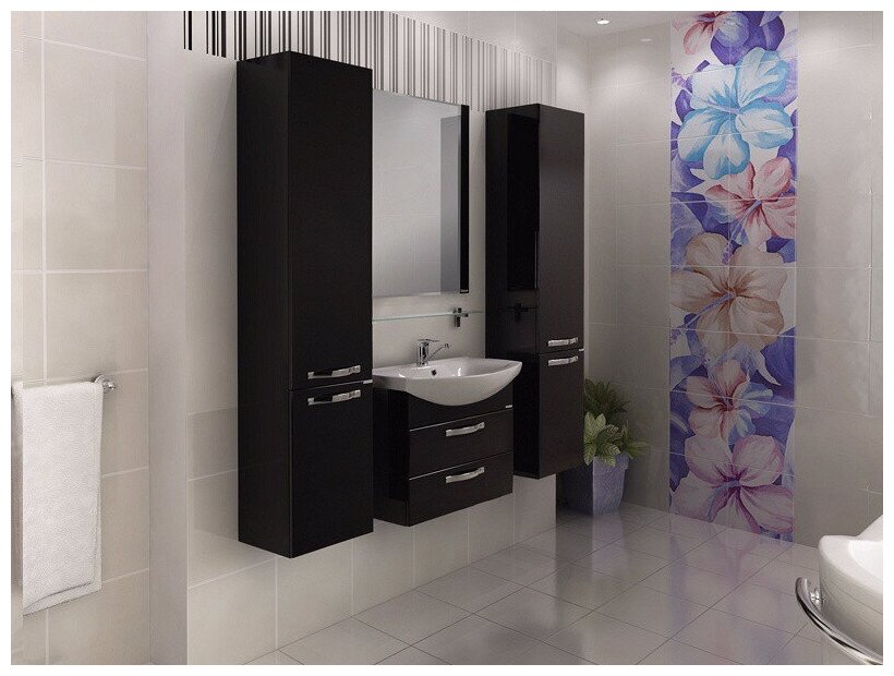 Тумба под раковину Акватон Ария М 80 черный глянец 1A140801AA950
