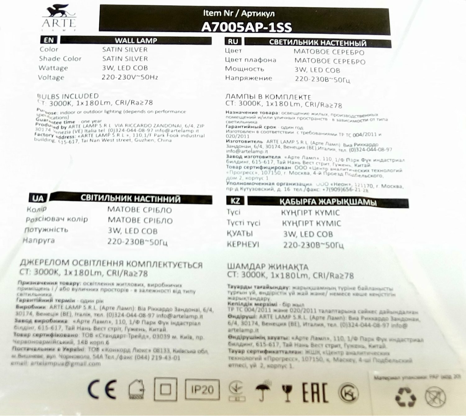 | Производитель | Arte Lamp |