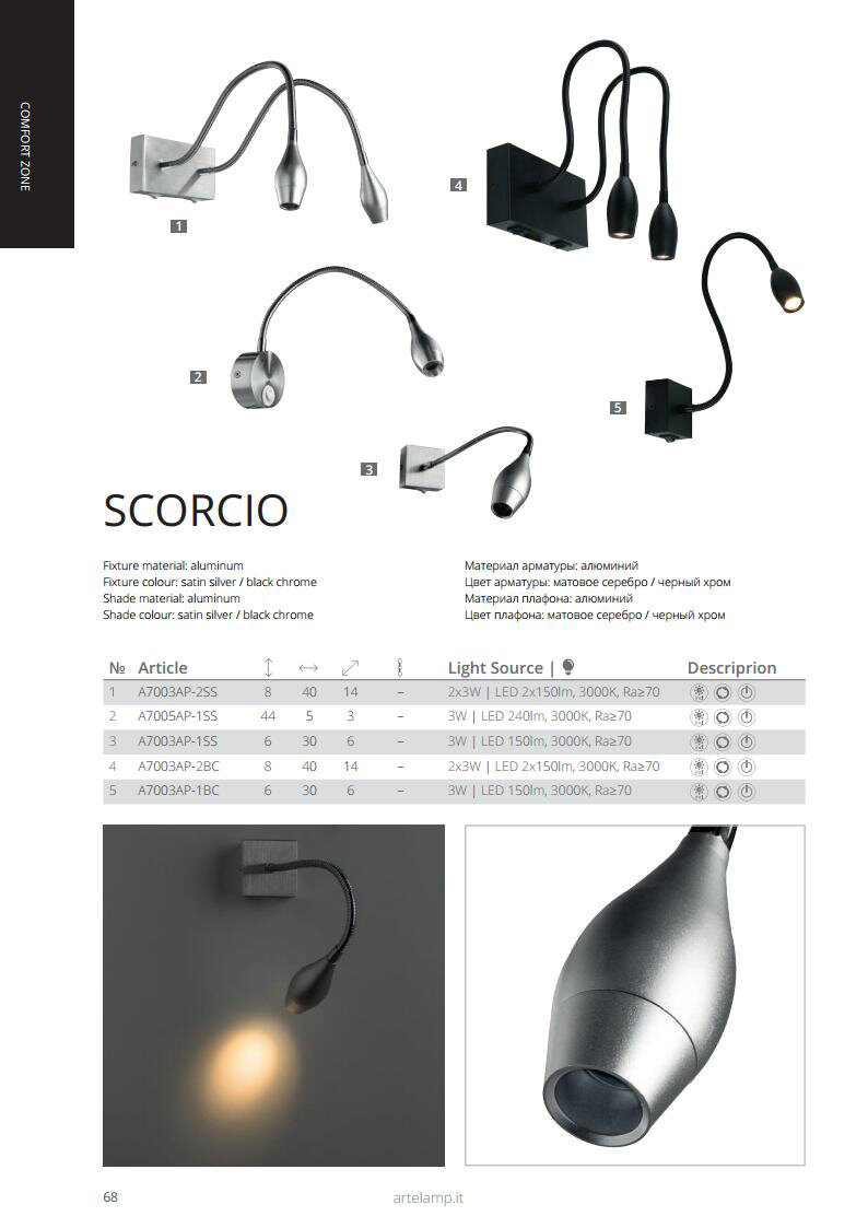Подсветки декоративные A7005AP-1SS SCORCIO