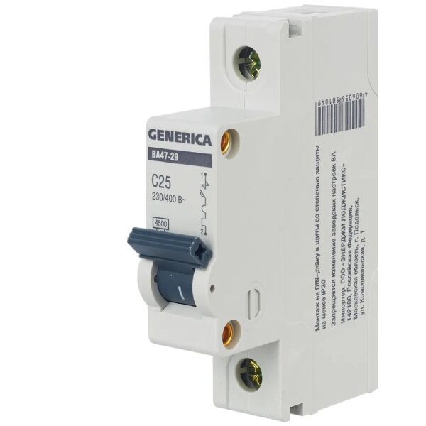 Выключатель автоматический однополюсный 25А C ВА47-29 GENERICA 4.5кА