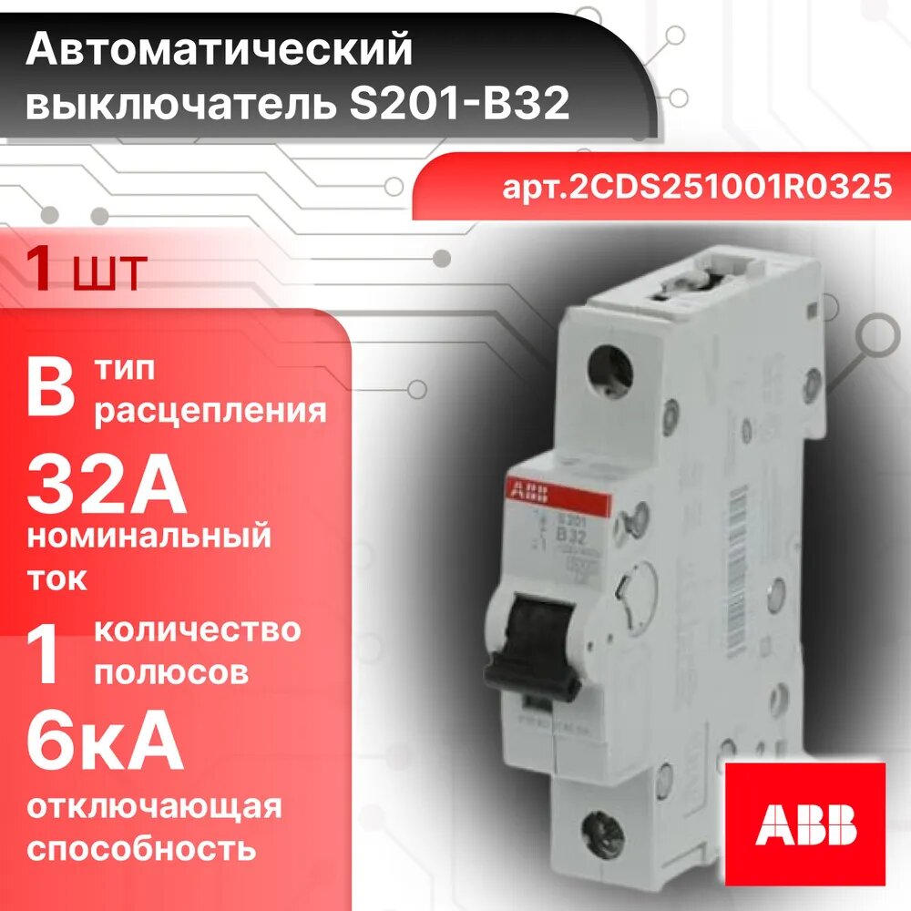 Купить S201 B32 Автоматический выключатель 1-полюсный, 32А, 6кА (хар-ка B) ABB, 2CDS251001R0325