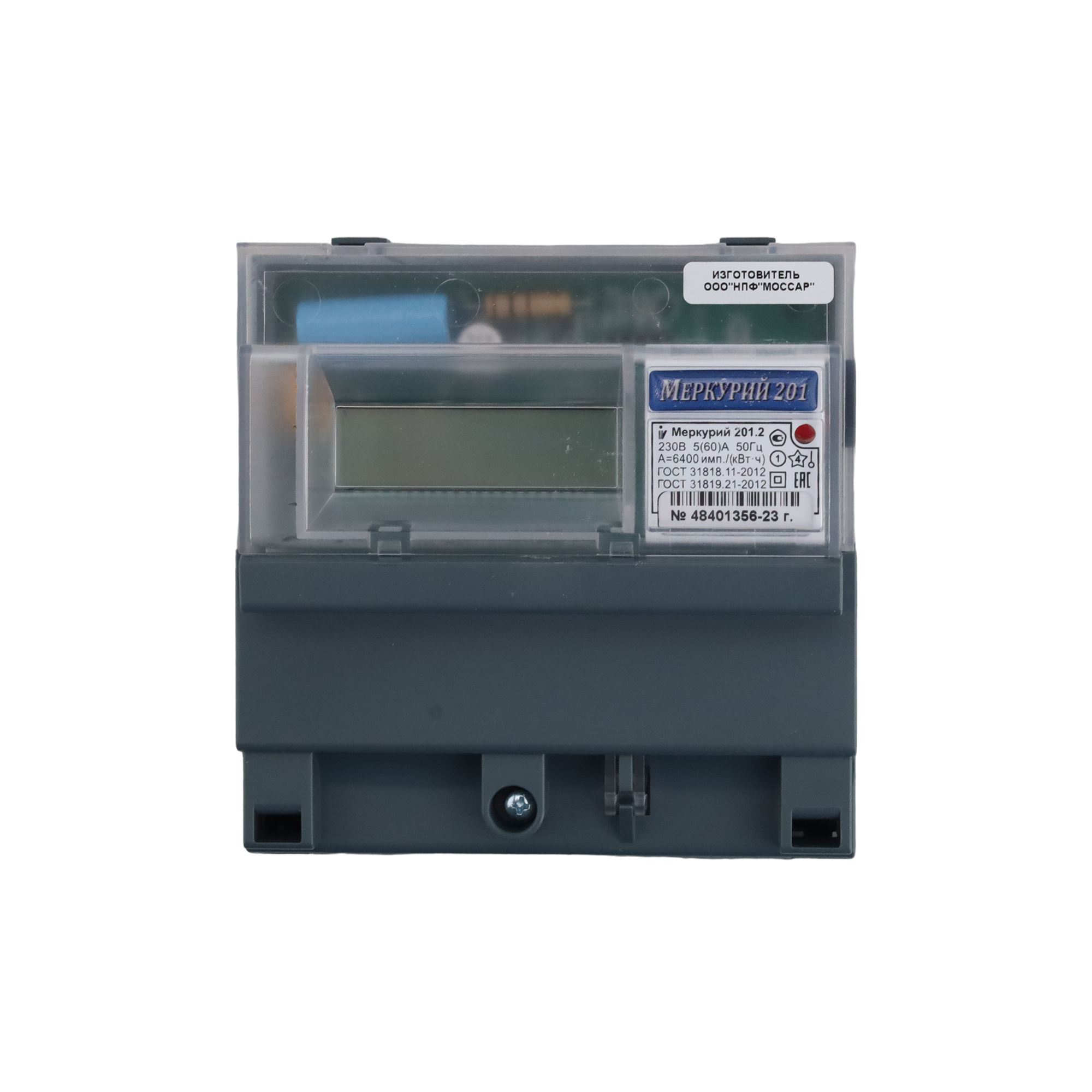 Счетчик электроэнергии Меркурий 201.2 однофазный однотарифный, 5(60), кл.точ. 1.0, D, ЖКИ, имп. выход | код 32416 | инкотекс (1 шт.)