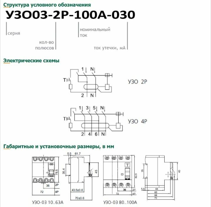 Дифференциальный выключатель двухполюсный DEKraft УЗО-03 new 80А, 6кА, 100мА, тип AC