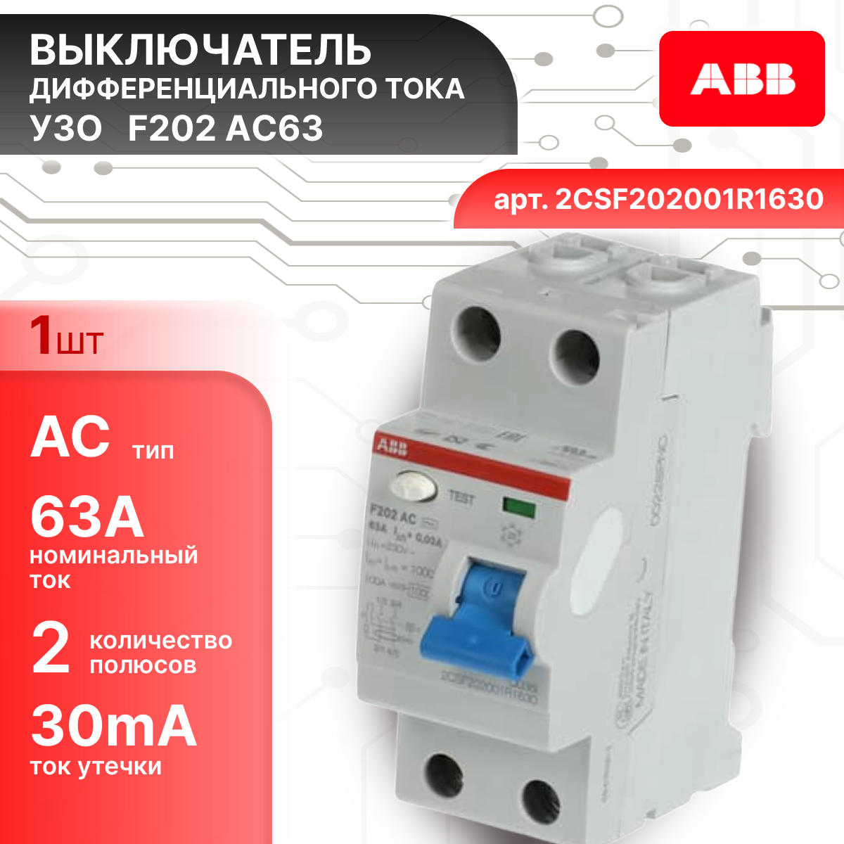 ABB F202AC УЗО 2Р 63А 30mA (AC)