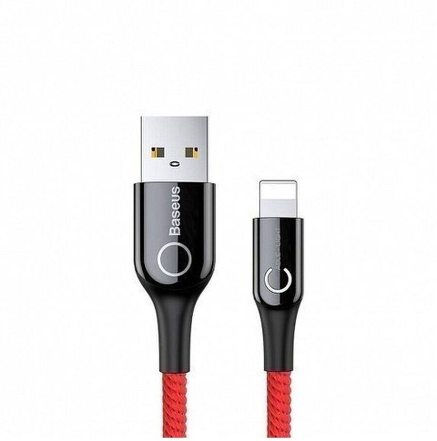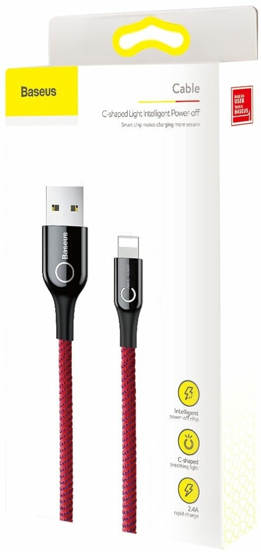 Кабель USB BASEUS C-shaped Light, USB - Lightning, 2.4А, 1 м, красный, интеллектуальный