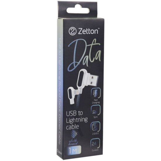 Купить Кабель ZETTON SyncCharge Round Fabric Corner USB - Lightning, черный