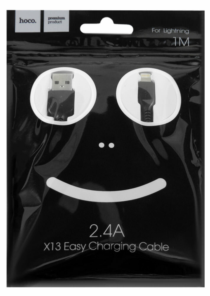 Кабель HOCO X13 Easy Lightning 8-pin, 2.4A, 1м, черный