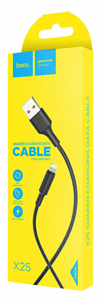 Кабель с разъемом USB X25 Soarer для Lightning, 2.0 A, длина 1.0 м, черный, [HOCO] 6957531080107