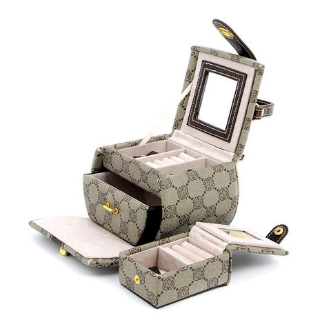Шкатулка для украшений Jardin D'Ete, 13,5 х 10,0 х 11,5 см, искусственная кожа, цвет коричнево-бежевый (PE6188)