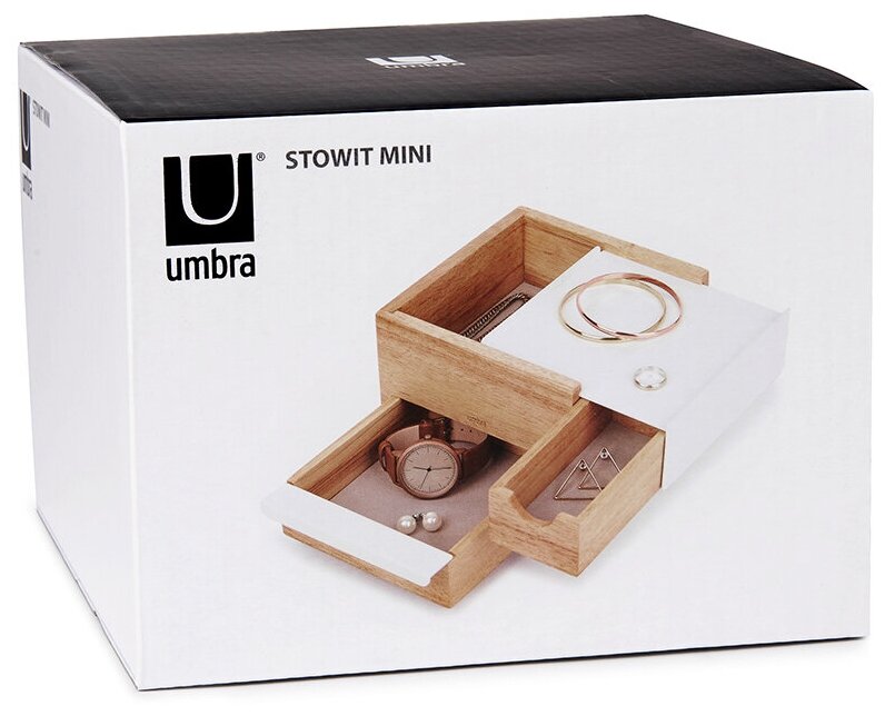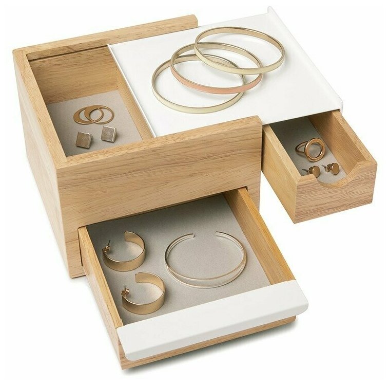 Шкатулка для украшений Umbra Mini Stowit, белая-дерево