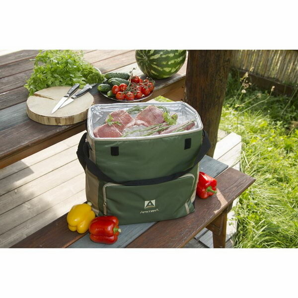 Имейте ввиду, чтобы добиться низкой температуры, нужно в сумку класть аккумуляторы холода. В простейшем случае - просто замороженные бутылки. Это отнимает заметно полезного объема. 20 литров - хороший объем сумки для дневного хранения на семью из 3-4 человек. |