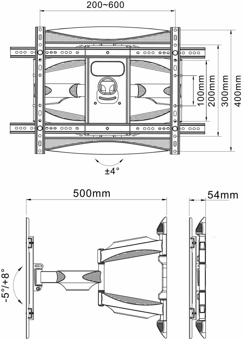 Кронштейн ONKRON/ 40-70 макс 400*600 наклон -5°/+8°, поворот ±140° Макс нагрузка 45,5кг, от стены 54-500мм, черный