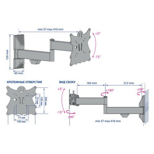 | Способ регулировки | наклон / отступ от стены / поворот |