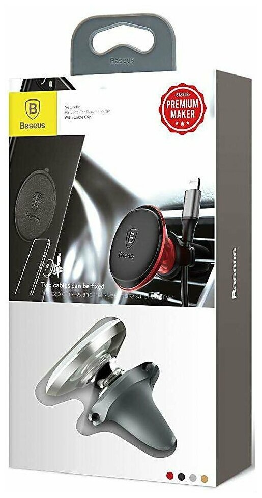 Автомобильный держатель Baseus SUGX-A09 Magnetic Air Vent Car Mount Holder магнитный с держателем для кабеля Red