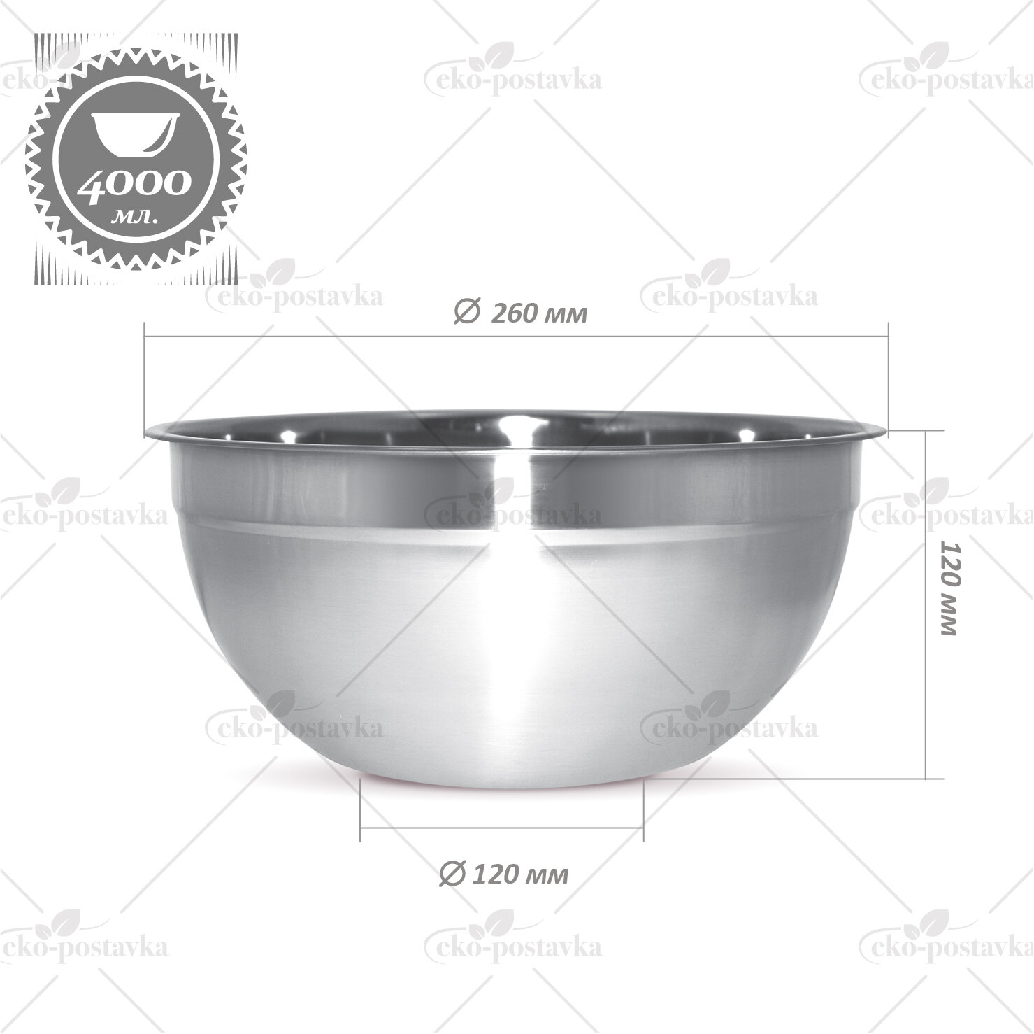 Миска из нержавеющей стали, BOWL-RING-26, р-р 26x12 см, объем-4.0 л (002799)