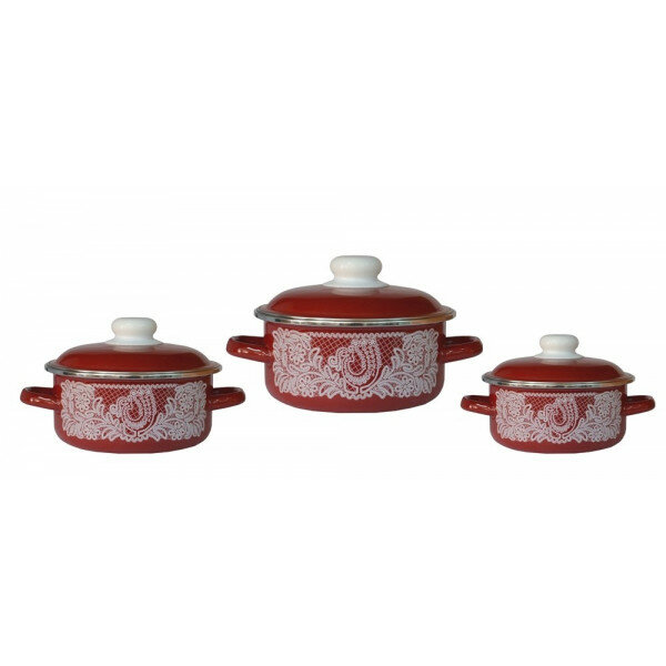 Набор кастрюль Вологодское кружево, 3 шт: 1,5/3/5 л стальэмаль 2385051 .