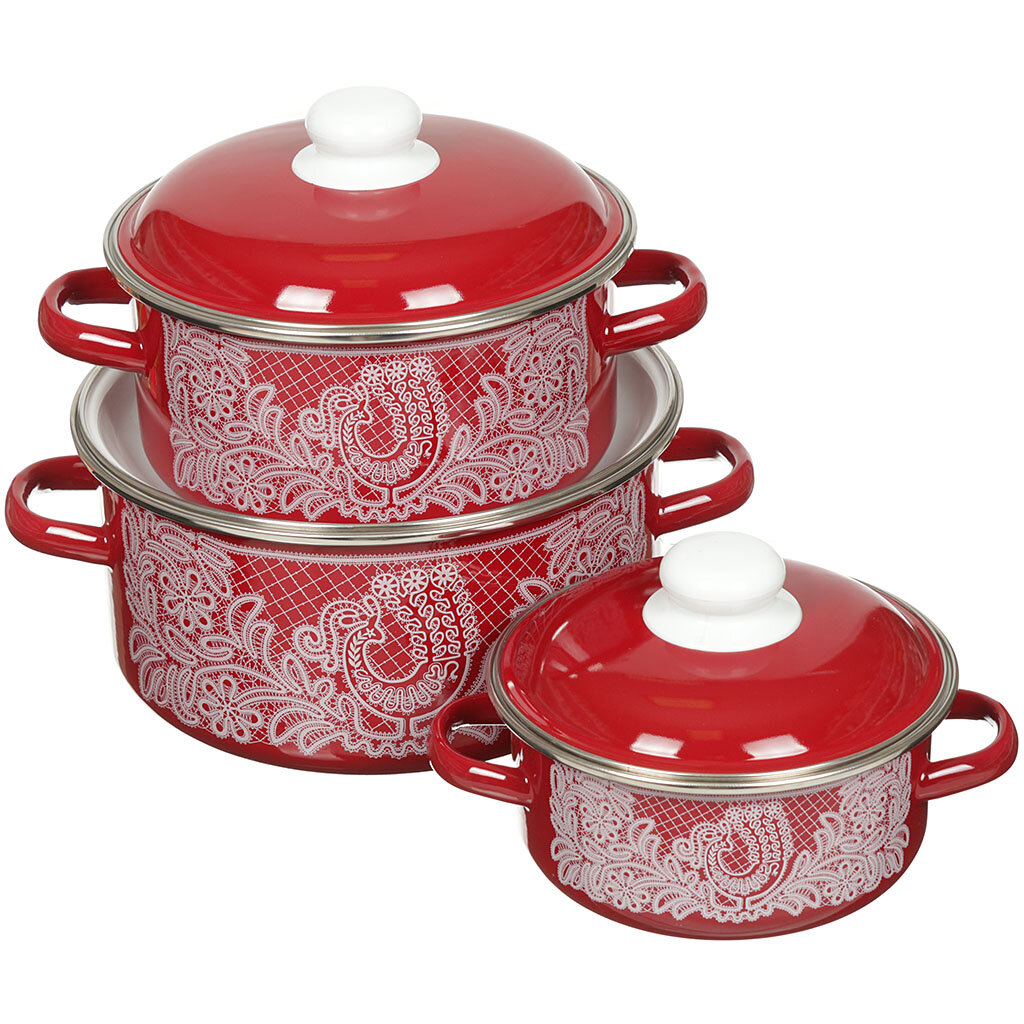 Набор кастрюль СтальЭмаль "Вологодское кружево", 3 шт: 1,5 л, 3 л, 5 л