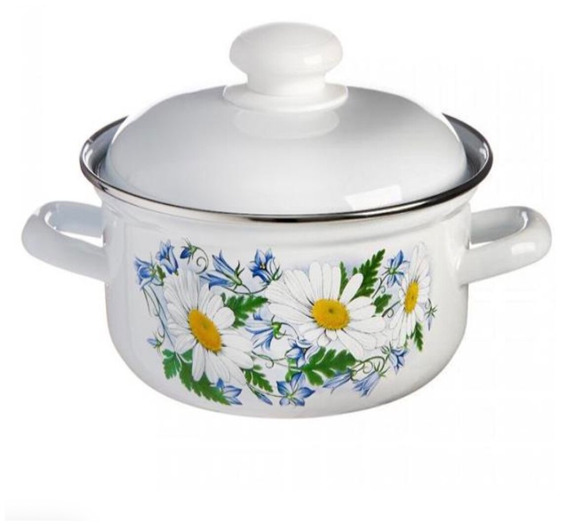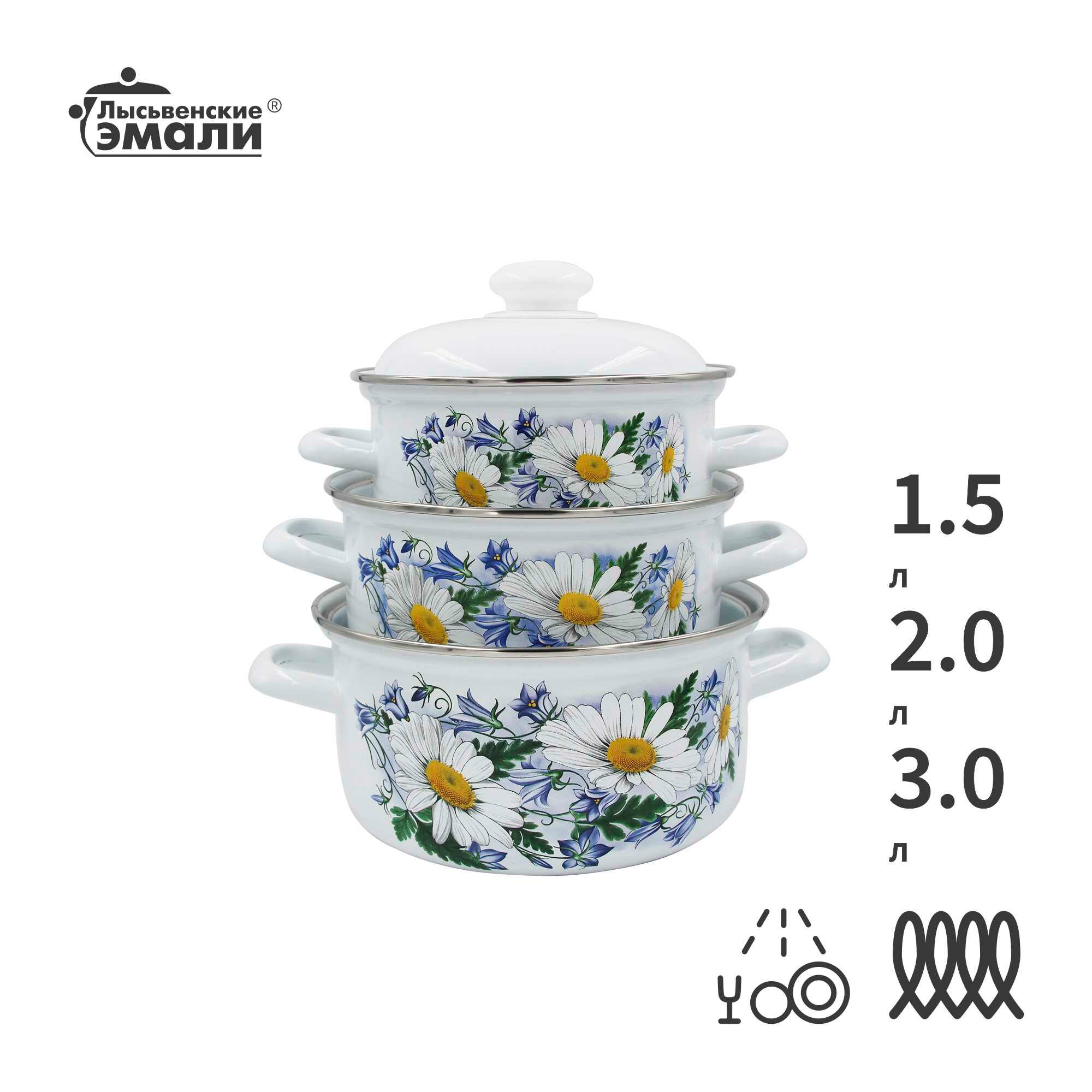 Набор эмалированных кастрюль 1,5 л, 2 л, 3 л Ромашковое поле Лысьвенские эмали