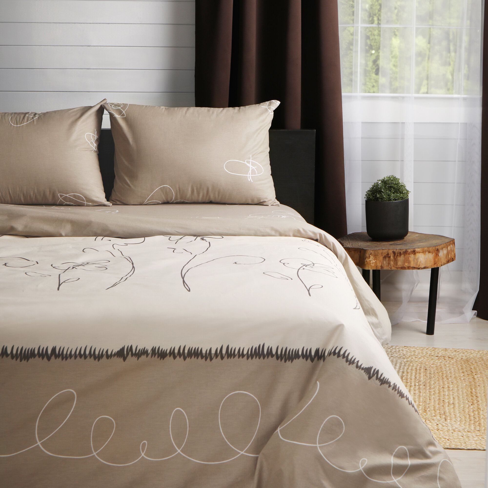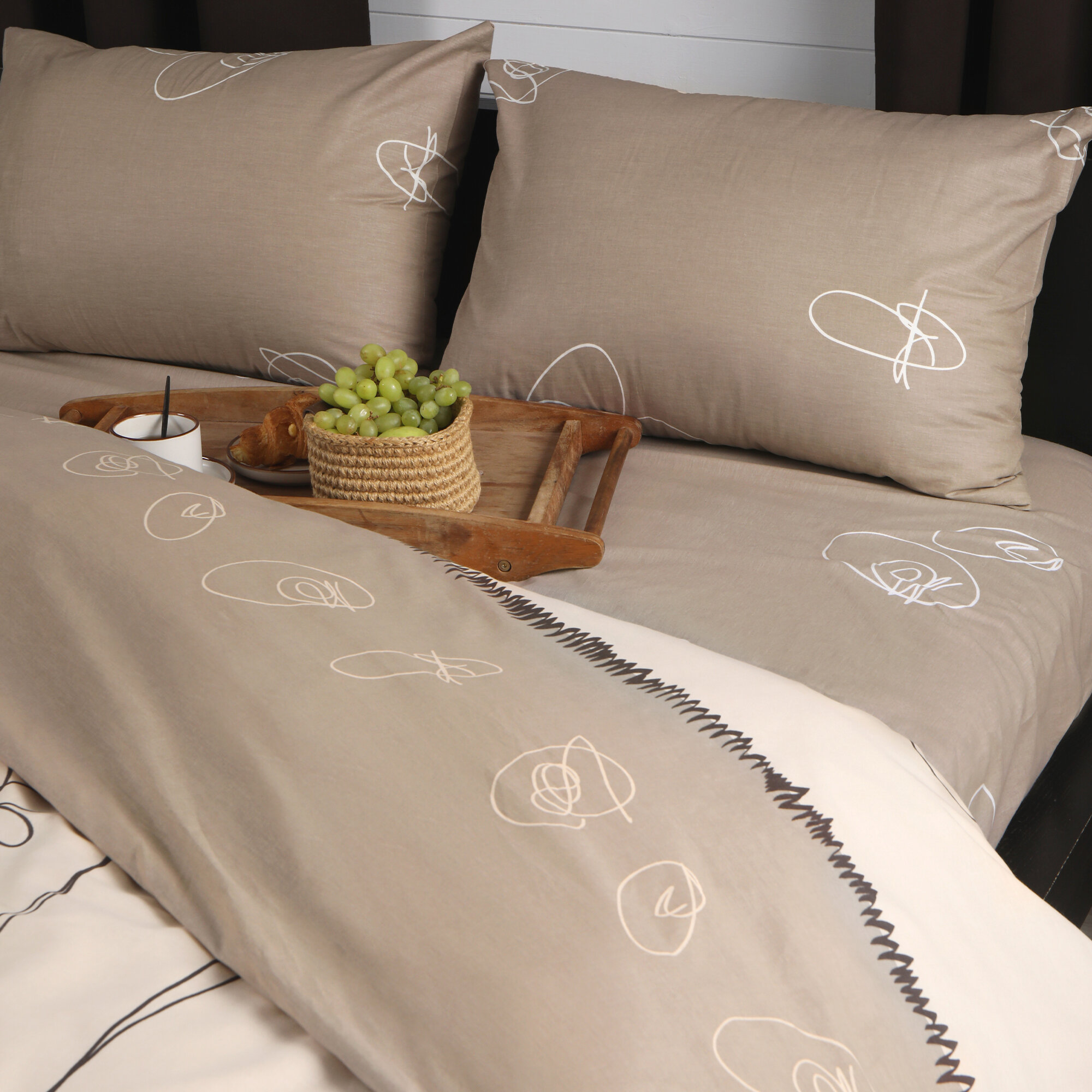 Постельное белье Фиалка Монмартра Волшебная ночь (бежевый-серый), Евро (наволочки 50х70 и 70х70)