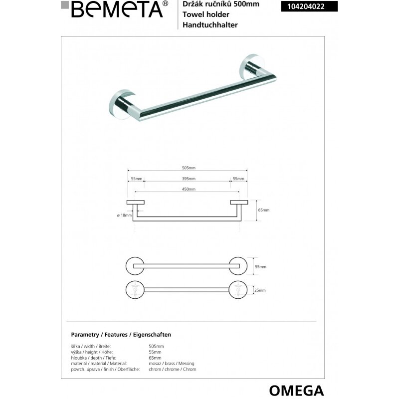 Полотенцедержатель 505 мм Bemeta Omega 104204022