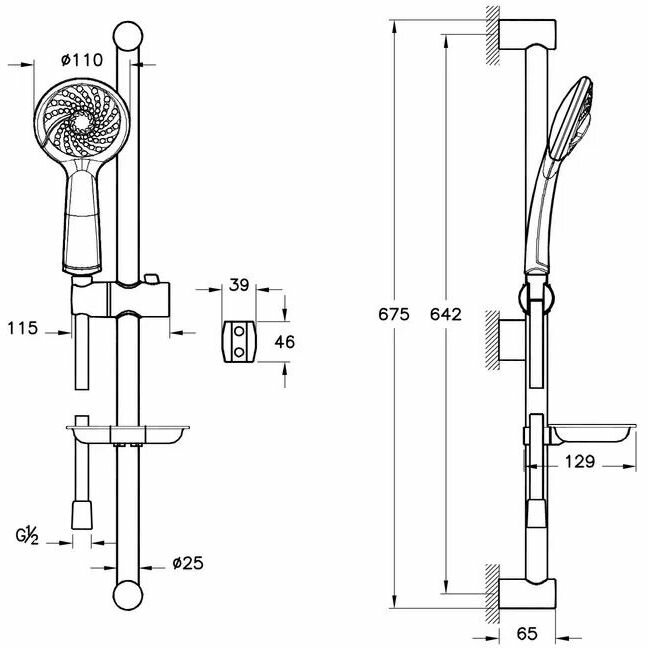 | Дополнительная информация | высота стойки для душа: 640 мм; диаметр душевой лейки: 110 мм |